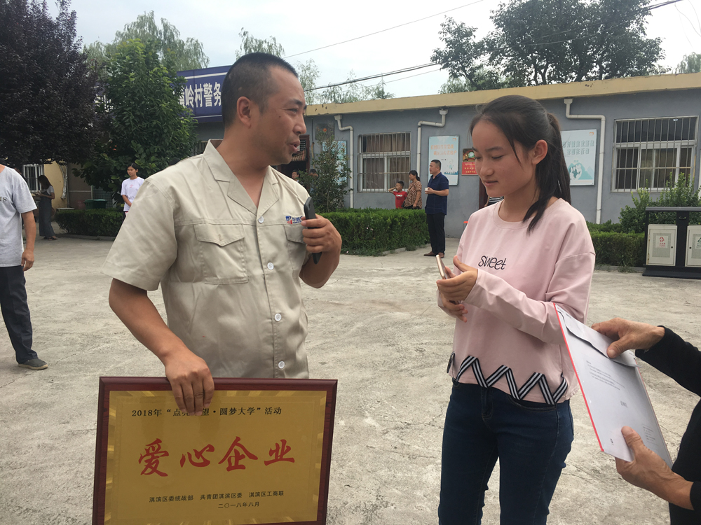 8.25日,金秋開學之際,由淇濱區(qū)委統(tǒng)戰(zhàn)部、共親團淇濱區(qū)委、淇濱區(qū)工商聯(lián)組織愛心企業(yè)舉行2018年度“點亮希望,圓夢大學”助學金發(fā)放活動。我公司銷售部代表張經(jīng)理參加了此次助學捐贈活動。