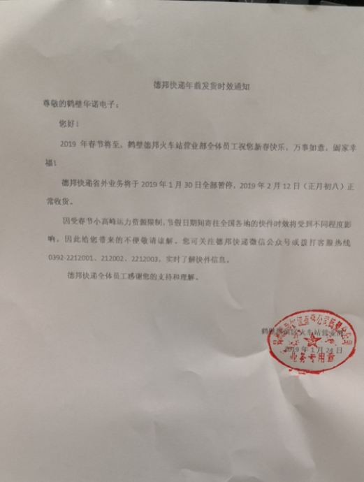 2019年春節(jié)即將到來,請各位客戶結(jié)合實際情況,合理安排訂貨時間。